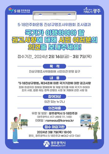 16일 광주시에 따르면 진상규명조사위는 4년간 공식 조사를 마치고 오는 6월 종합보고서를 작성해 국민, 대통령, 국회에 보고할 예정이다.