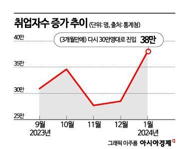 다만 실업자는 4만8000명 늘어난 107만2000명으로 집계됐다. 지난해 11월 이후 3개월 연속 증가하는 추세다. 실업률도 0.1%포인트 상승한 3.7%를 기록했다. 실업자 규모는 2022년 1월 114만3000명 이후로 가장 많았다. 서 국장은 "1월 기준 2022년과 지난해에 많은 실업자 수 감소에 따른 누적 기저효과"라며 "조사 기간 중 일부 공공기관 공채가 있었는데, 구직활동을 하게 되면 실업자로 표현될 수 있다"고 말했다.