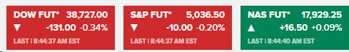 이날 오전 8시45분 기준 다우지수, S&P500지수 선물은 각각 0.34%, 0.20% 하락하고 있다. 나스닥지수 선물은 0.09% 오른 보합 상태다.