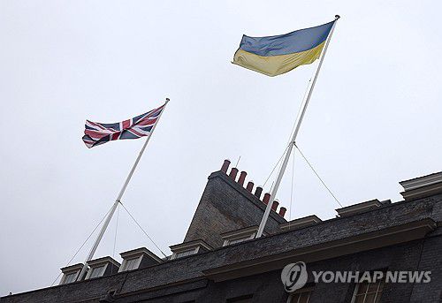 영국 총리실의 영국과 우크라이나 국기 |