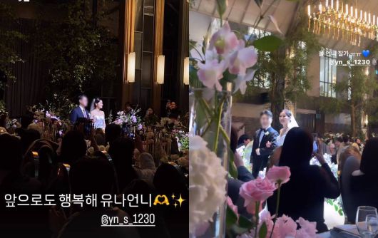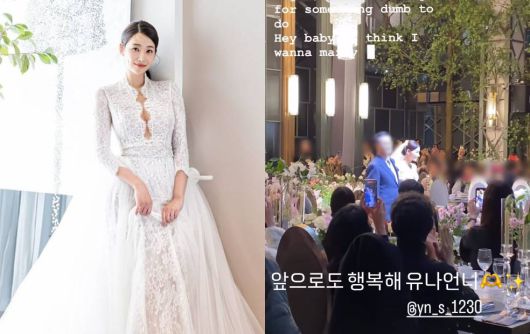 AOA 멤버 혜정과 찬미는 자신의 채널에 각각 "울 언니 잘가ㅠㅠ", "앞으로도 행복해 유나언니"라며 결혼식 영상을 게재해 팬들의 반가움을 자아냈다.