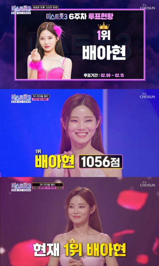 배아현은 현재 방송 중인 TV CHOSUN '미스트롯3'에서 우승 후보다운 저력을 보여주고 있다.