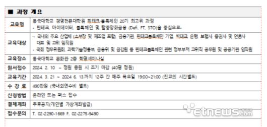 동국대학교가 제20기 핀테크블록체인융합산업 최고고위자과정을 개강한다. 이번 과정부터 산업별 핀테크블록체인 응용사례를 집중적으로 탐구할 수 있는 실무적 교육을 추가했다.