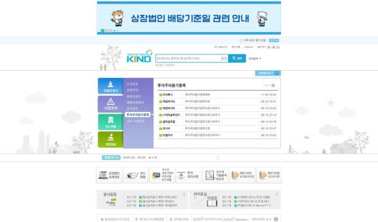 카인드(KIND)는 기업활동 일정과 기타 정보를 제공하는데 초점이 맞춰진 느낌이다. |