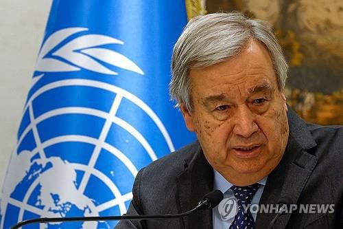 기자회견 중인 구테흐스 유엔 사무총장 |