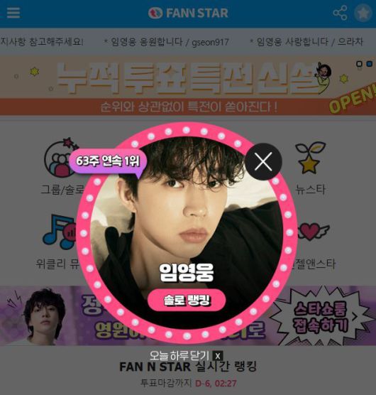'팬앤스타' 2월 둘째 주 솔로 랭킹 투표에서 4840만 5685표 득표