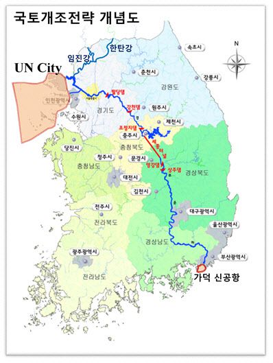 그는 “5대 강을 10m 준설하면 560억㎥를, 20m까지 준설하면 1,200억㎥의 골재를 채취할 수 있어 엄청난 재원을 확보할 수 있다”며 “여기서 얻은 사토로 경기만과 가덕도 일대를 매립하여 분양할 수 있다”고 말했다.