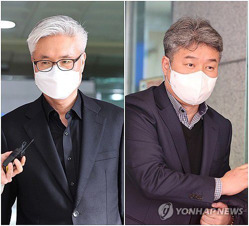 법원 나서는 박성민 전 서울청 공공안녕정보외사부장과 김진호 전 용산서 정보과장 |