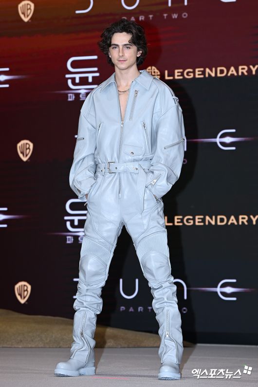 (엑스포츠뉴스 고아라 기자) 21일 오후 서울 영등포구 여의도 콘래드 호텔에서 영화 '듄: 파트2'(감독 드니 빌뇌브) 내한 기자간담회가 열렸다. 이날 내한 행사에 참석한 배우 티모시 샬라메가 포토타임을 갖고 있다.고아라 기자 iknow@xportsnews.com