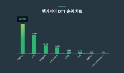 랭키파이에 따르면 넷플릭스는 트렌드 지수 68,985포인트로 전일보다 10,139포인트 하락해 1위에 올랐다.