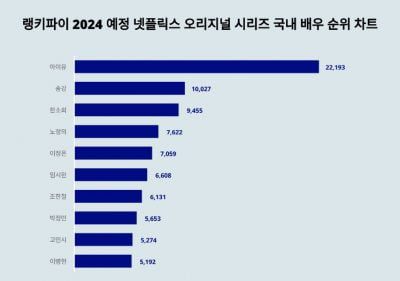랭키파이가 발표한 2월 3주차 2024 예정 넷플릭스 오리지널 시리즈 국내 배우 트렌드 지수에 따르면 아이유의 트렌드 지수는 22,193포인트로 전주보다 4,333포인트 상승해 1위를 차지했다.