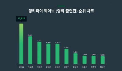 랭키파이가 발표한 2월 3주차 웨이브 (영화 출연진) 트렌드 지수에 따르면 이하늬가 트렌드지수 13,816포인트로 1위에 올랐다.