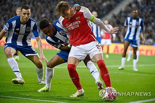 아스널이 22일(한국시간) 포르투갈 포르투에 있는 에스타디우 두 드라강에서 열린 포르투와의 2023-2024시즌 유럽축구연맹(UEFA) 챔피언스리그 16강 1차전에서 후반 추가시간 극장 골을 허용하며 0-1로 패했다.