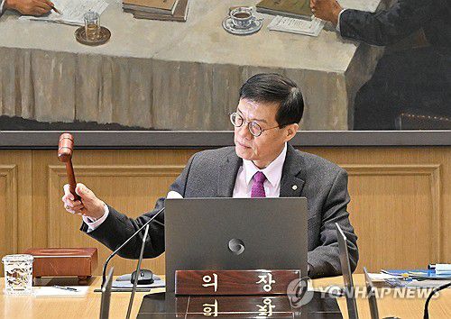 의사봉 두드리는 이창용 총재 |