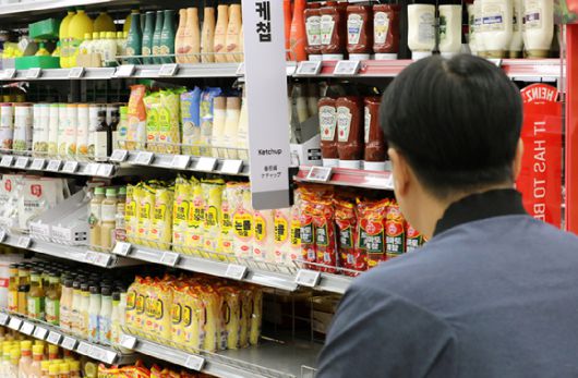 서울 시내 한 대형마트에서 고객이 케첩, 마요네즈 등을 보고 있다. [사진=뉴시스] |