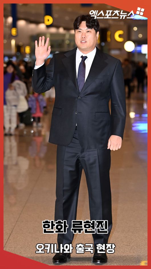 (엑스포츠뉴스 인천공항, 김한준 기자) 8년 170억 초대형 계약으로 화려한 귀환을 알린 한화 류현진이 23일 오전 인천국제공항을 통해 일본 오키나와로 출국했다.