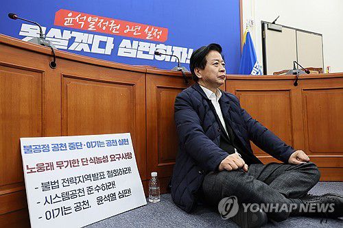 (서울=연합뉴스) 홍지인 정윤주 기자 = 더불어민주당 이재명 대표는 23일 노웅래 의원이 컷오프(공천 배제)에 반발하며 단식농성에 돌입한 것에 대해 "이런다고 해서 상황이 바뀌지는 않는다. 바뀌어서도 안 된다"고 말했다.