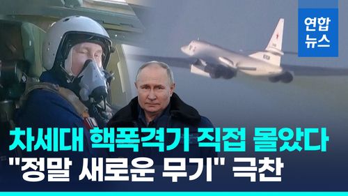(서울=연합뉴스) 블라디미르 푸틴 러시아 대통령이 핵무기를 탑재할 수 있는 초음속 장거리 전략폭격기 투폴레프(Tu)-160M을 직접 타고 비행하며 핵전력을 과시했습니다.