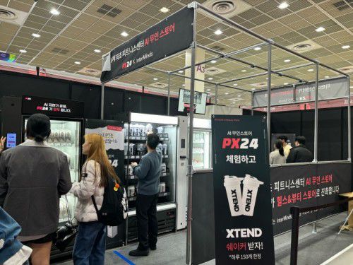 스포엑스2024에 엑시터즈와 함께 선보인 매장명은 ‘PX24’ 이다. 헬스장에 샵인샵 형태로 입점해 건강식품, 단백질 음료, 헬스 용품 등을 파는 무인 매장이다. 일반적인 무인 매장 사용 방법과 다른 점이 있다. 구매할 물건을 고르고 키오스크 앞에 서면 집어든 제품 리스트가 키오스크에 자동으로 표시된다. 매장 이용자는 구매할 제품을 키오스크에서 선택하거나 바코드 스캔할 필요 없이 자동으로 뜬 구매 내역 확인 후 카드, 삼성페이, 애플페이 혹은 PX24앱을 통해 결제해 나갈 수 있다.