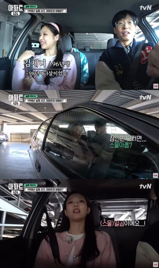 이동 중 제니는 "저희가 지금 1998년도 사람인 거예요?"라고 물었고, 유재석은 "그렇지. 제니가 96년생이라며"라고 말했다.