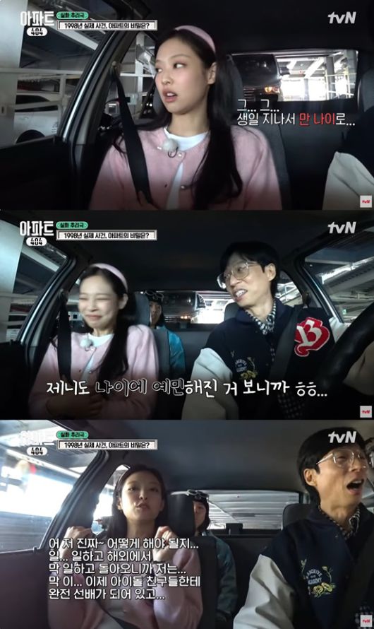 이를 들은 유재석은 "제니도 나이에 예민해진 거 보니까"라면서 웃었다.