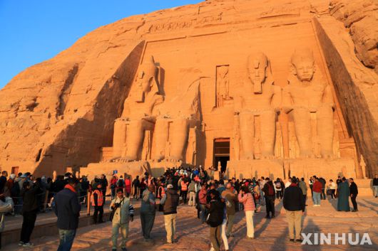 [아스완=신화/뉴시스] 22일(현지시각) 이집트 아스완에서 태양 축제가 열려 관광객들이 아부 심벨 대신전을 방문하고 있다. 매년 2월 22일과 10월 22일에 열리는 태양 축제 동안, 아침 햇살이 아부 심벨 신전의 가장 안쪽까지 도달해 내부 조각품들을 비추는 장관을 연출한다. 2024.02.23.