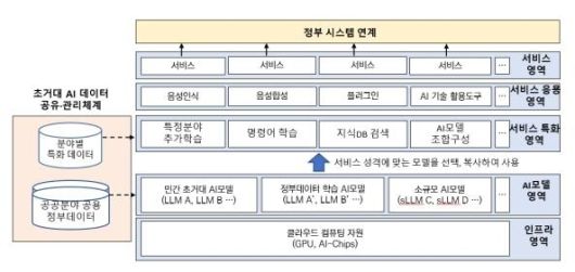 정부는 AI 기술 변화와 기관 간 데이터 공유 가능 범위 등을 고려해, 기관별·업무별 필요에 따라 다양한 크기의 민간 AI모델을 선택하고 교체할 수 있는 유연한 서비스 구현을 지원한다는 계획이다.