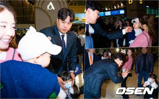 공항에는 류현진 가족 외에도 수많은 팬들과 취재진이 몰렸다. 류현진은 첫 인터뷰 후 팬들에게 사인을 했다.
