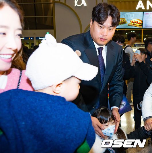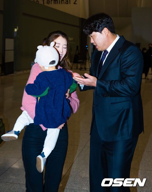 이 자리에는 가족들도 함께였다. 아내 배지현 씨는 이른 오전 시간임에도 딸, 아들을 데리고 공항에 모습을 드러냈다.