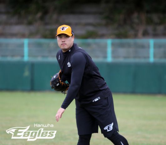 25일 오키나와 스프링캠프에서 훈련 중인 류현진. 한화이글스 제공 |