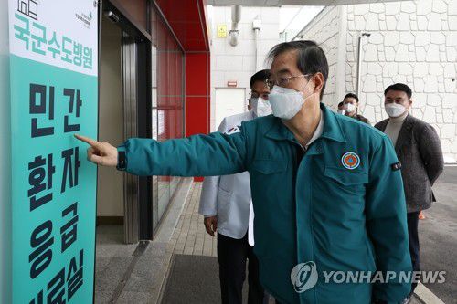 (서울=연합뉴스) 김영신 기자 = 한덕수 국무총리는 25일 전공의를 중심으로 한 의사들의 집단행동에 따라 의료 공백 우려가 커진 것과 관련, 경기도 성남시 소재 국군수도병원을 방문해 공공의료기관 비상 진료 상황을 점검했다.