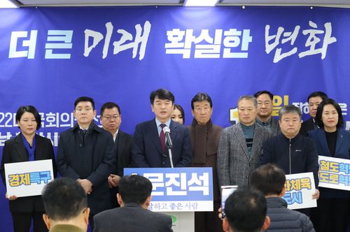 (천안=연합뉴스) 유의주 기자 = 더불어민주당 문진석 의원(충남 천안갑)은 26일 천안시청 브리핑룸에서 총선 출마 기자회견을 갖고 재선 도전을 선언했다.