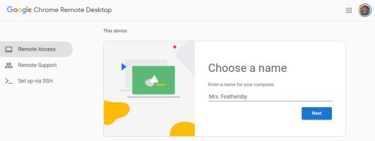 PC의 이름을 짓고 ‘다음(Next)’ 버튼을 누르면 최소 6자 이상의 PIN 번호를 만들게 된다. 안전하게 PC에 원격 접속하려면 PIN을 정해야 하고, PIN을 만들려면 구글에 접속한 상태여야 한다. 구글은 모든 원격 데스크톱 세션이 추가 보호를 위해 암호화되어 있다고 주장한다.