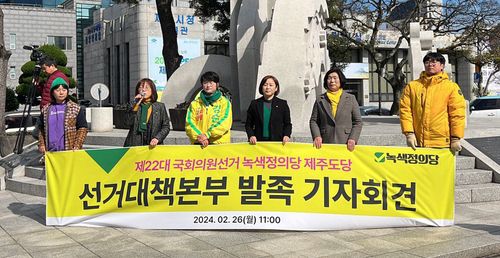 (제주=연합뉴스) 변지철 기자 = 녹색정의당 제주도당이 제22대 국회의원 선거를 40여일 앞둔 26일 선거대책본부를 발족했다.