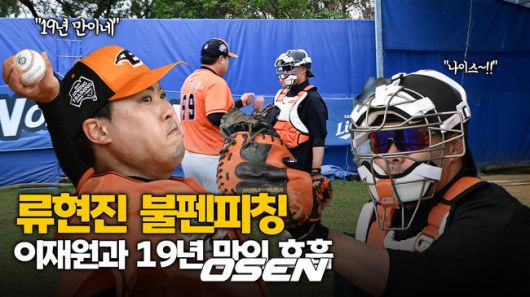 [OSEN=오키나와(일본), 조은정 기자] 한화 이글스 류현진이 26일 일본 오키나와 온나손 아카마 구장에서 삼성 라이온즈와의 연습경기에 앞서 불펜피칭을 진행했다. 불펜피칭에 나선 류현진은 포수 이재원을 향해 “19년 만이네”라며 반가움을 드러냈다. /cej@osen.co.kr