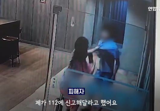 불법 촬영 피해 여성이 가해 남성을 추궁하고 있다. 사진=연합뉴스TV 캡처 |