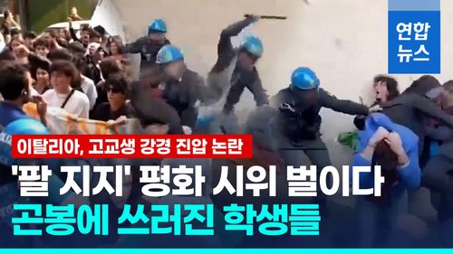 (서울=연합뉴스) 이탈리아에서 경찰이 팔레스타인 지지 시위에 참여한 고등학생들을 곤봉으로 가격하는 등 강경 진압했다는 논란이 일고 있습니다.