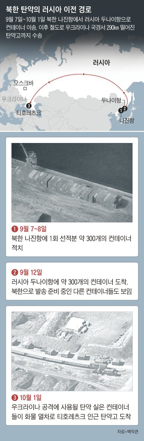 앞서 미국은 북한이 지난해 10월 북한에서 러시아로 컨테이너들이 이동하는 사진을 공개하며 “북러 정상회담 이전에 북한이 러시아에 1000개가 넘는 컨테이너 분량의 군사 장비와 탄약을 제공했다”고 밝혔다. 이후로도 활발한 북러 간 무기 거래가 이뤄지고 있다는 것이다.