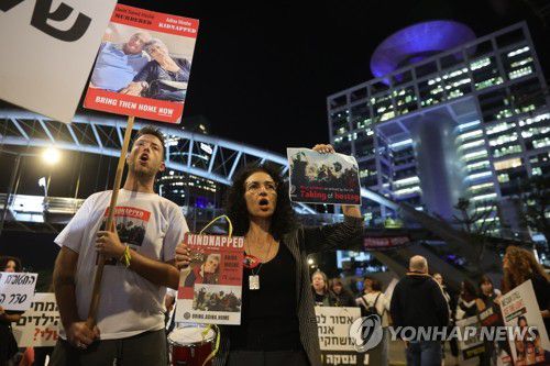 인질 석방 합의 요구 시위하는 이스라엘인들 |