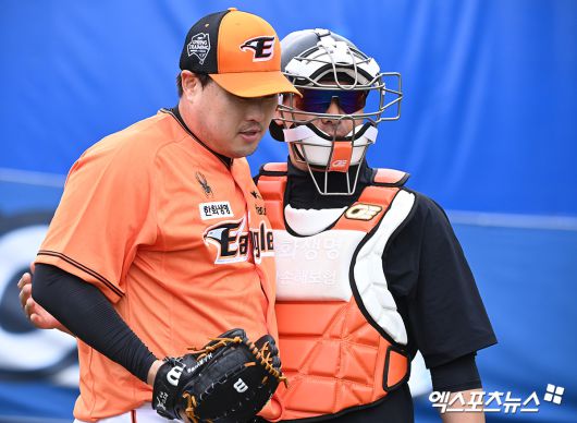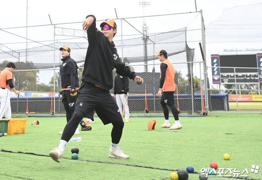 아직 많은 이야기는 나누지는 않았어도, 훈련을 하며 문동주, 황준서 등과 장난을 치기도 하면서 벽을 허물어 가고 있다. 류현진은 황준서와 나눈 어떤 대화를 했는지 물었더니 그는 "황준서 선수가 살이 안 찐다고 해서 살 찔 수 있는 방법을 알려주고, 구체적으로 많이 먹으라고 했다"고 웃었다.