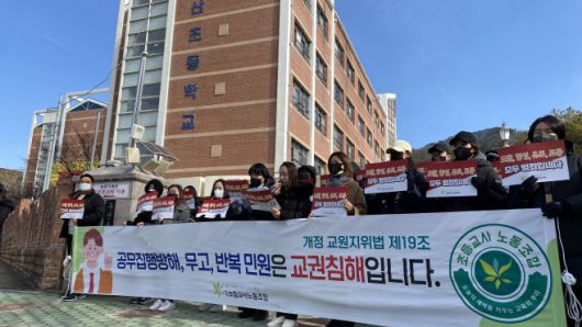전국초등교사노조가 지난 1월 25일 오후 경남 김해시 한 초등학교 앞에서 '김해 모 선생님 교권회복 촉구 집회'를 열고 있다. /연합뉴스 |