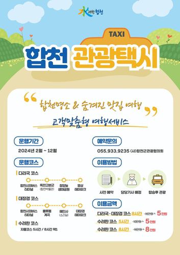 이 사업은 합천을 찾는 관광객에게 다양한 관광지를 개인별 일정에 맞춰 여행할 수 있도록 차량 서비스를 제공하는 것으로 (사)합천군관광협의회에서 운영한다.