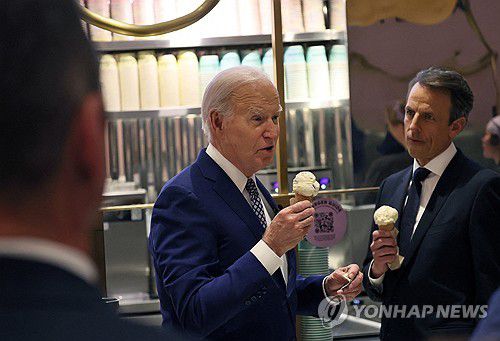 뉴욕을 방문한 바이든 대통령은 '반 루엔' 아이스크림 체인점을 깜짝 방문한 자리에서 기자들과 만나 휴전이 언제 시작될 것으로 보느냐는 질문에 "이번 주말까지로 기대하고 있다"고 말했다.