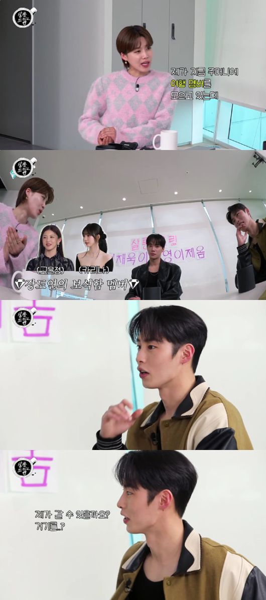 장도연은 "제가 지금 주머니에 여행 멤버를 모으고 있다. 제가 부르면 들어올 수 있냐"고 물었고, 이재욱은 "네"라고 답했다.