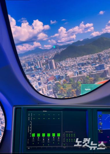 직접 타보니 정면에는 서울 하늘이 펼쳐졌다. 기체가 뜨는 느낌이 드는 영상이었다. 실제로는 기체가 약 80cm 뜬다. 기내에는 중간에 전화하는 장면, 식당 예약 등의 화면이 나오는 등 다양한 시나리오가 연출돼 생동감을 더했다. 기체 안에는 조정석 이외 4명이 같이 탈 수 있다.