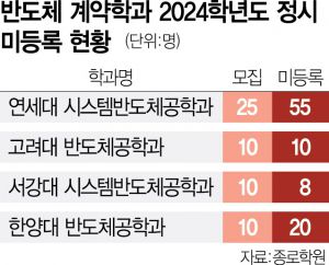 교육계는 등록 포기자 상당수가 의예과로 빠져나간 것으로 추정했다. 임성호 종로학원 대표는 “올해 반도체 계약학과 등록을 포기한 비율이 늘어난 데는 최근 의대 입학 정원 논란 와중에도 의대에 대한 수험생 선호도가 지난해보다 높아진 영향이 크다”고 분석했다.