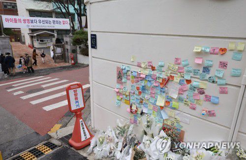 학교 앞 추모 메시지들 |