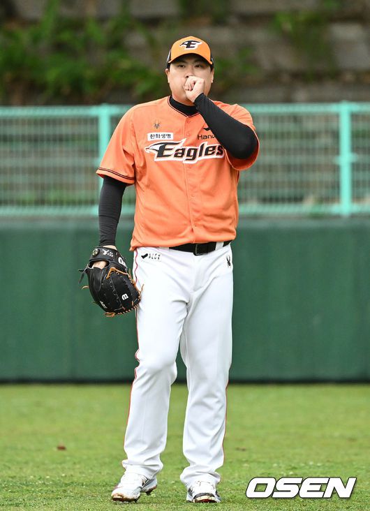 최원호 감독은 "아침 운동장에 나올때 비가 없어 당겨서 하려고 했다. 현진이도 웬만하면 던지려 했는데 비가 많이 와서 계속 대기할 수 없어 미루었다. 내일 날씨가 관건이다. 내일도 못하면 로테이션을 다시 생각해봐야 할 것 같다. 개막전이 애매해진다. 내일 정상적으로 하면 문제는 없다"고 설명했다.
