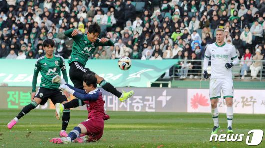 (전주=뉴스1) 유경석 기자 = 1일 전북 전주시 전주월드컵경기장에서 열린 하나은행 K리그1 2024 개막전 전북현대와 대전하나시티즌의 경기에서 전북 한교원이 볼경합을 하고 있다. 2024.3.1/뉴스1Yks919@news1.krCopyright ⓒ 뉴스1. All rights reserved. 무단 전재 및 재배포, AI학습 이용 금지.