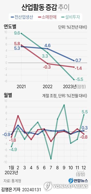 산업생산은 지난해 11∼12월 두 달 연속 증가세를 보인 바 있다. 이런 연말 생산 회복세가 연초까지 이어졌을지가 관심사다.